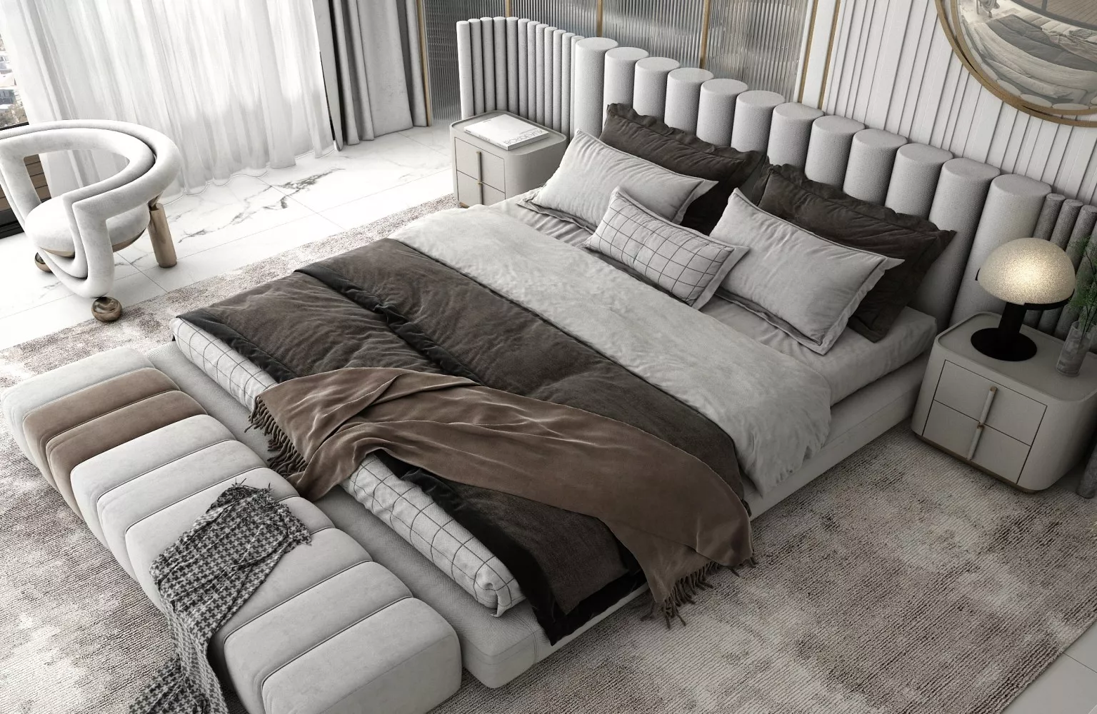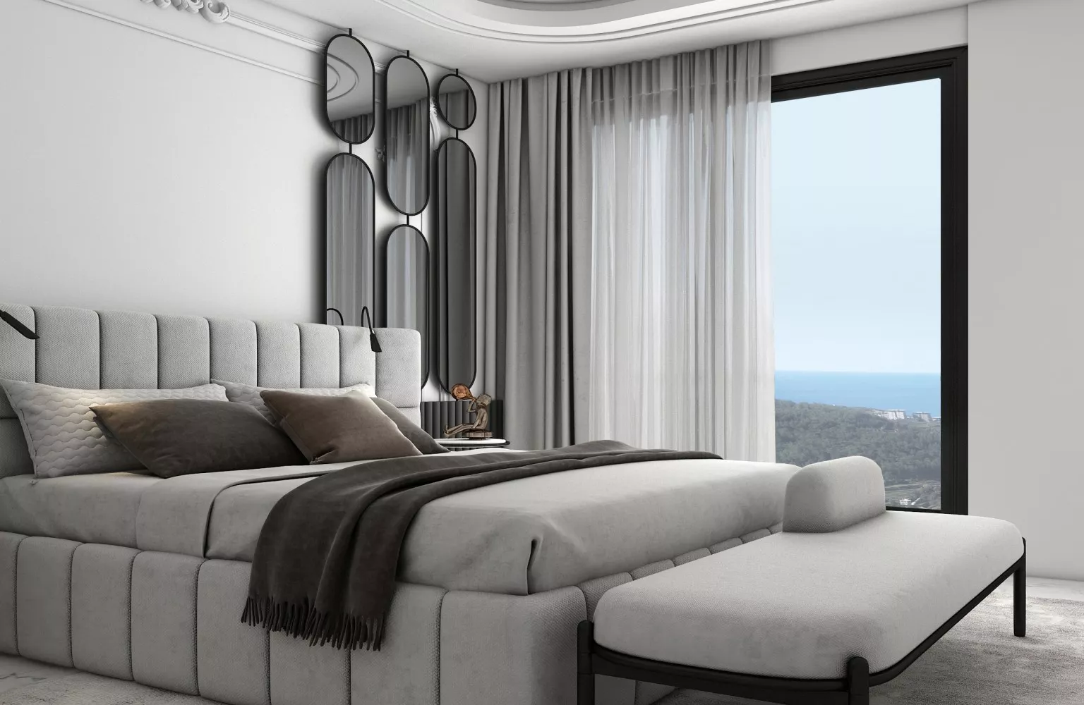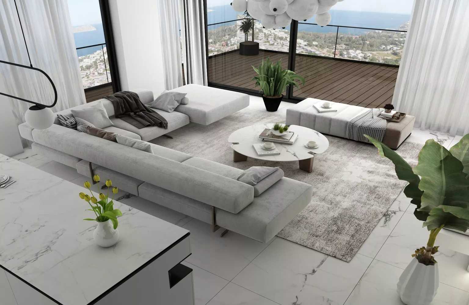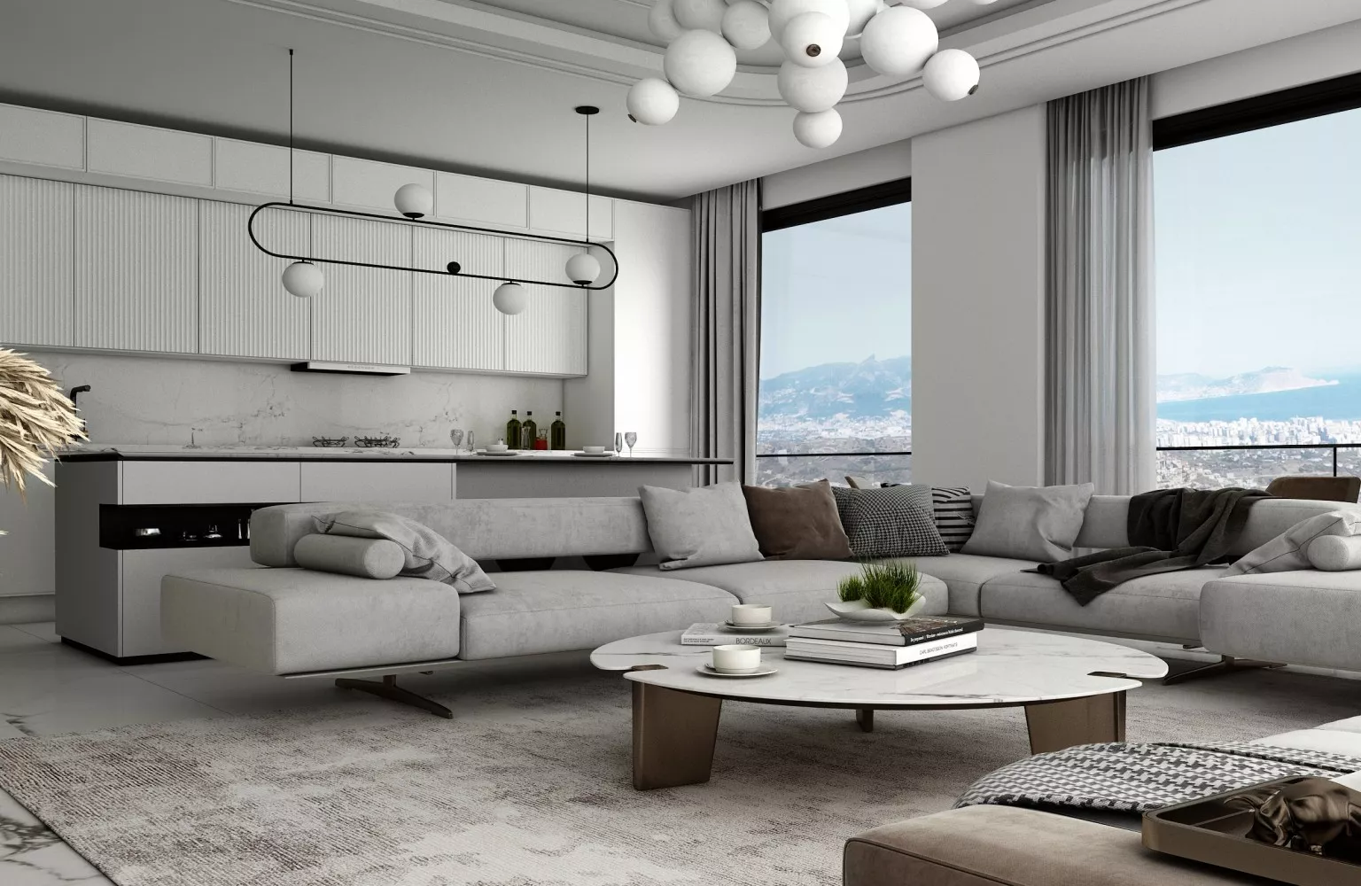 تُبنى الشقق والفلل تحت الإنشاء بالعمارة الحديثة والمواد عالية الجودة. تم تصميمها لحياة مريحة، حيث تحتوي على أنظمة المنازل الذكية، شرفات واسعة، مطابخ حديثة، ومساحات معيشة فسيحة. الفيلات مزودة بمسابح خاصة، حدائق كبيرة، وإطلالات بانورامية. بالإضافة إلى ذلك، تشمل المرافق داخل المجمعات مسابح، صالات رياضية، مناطق ألعاب للأطفال، حمامات تركية، ساونا، ومناطق اجتماعية متنوعة.