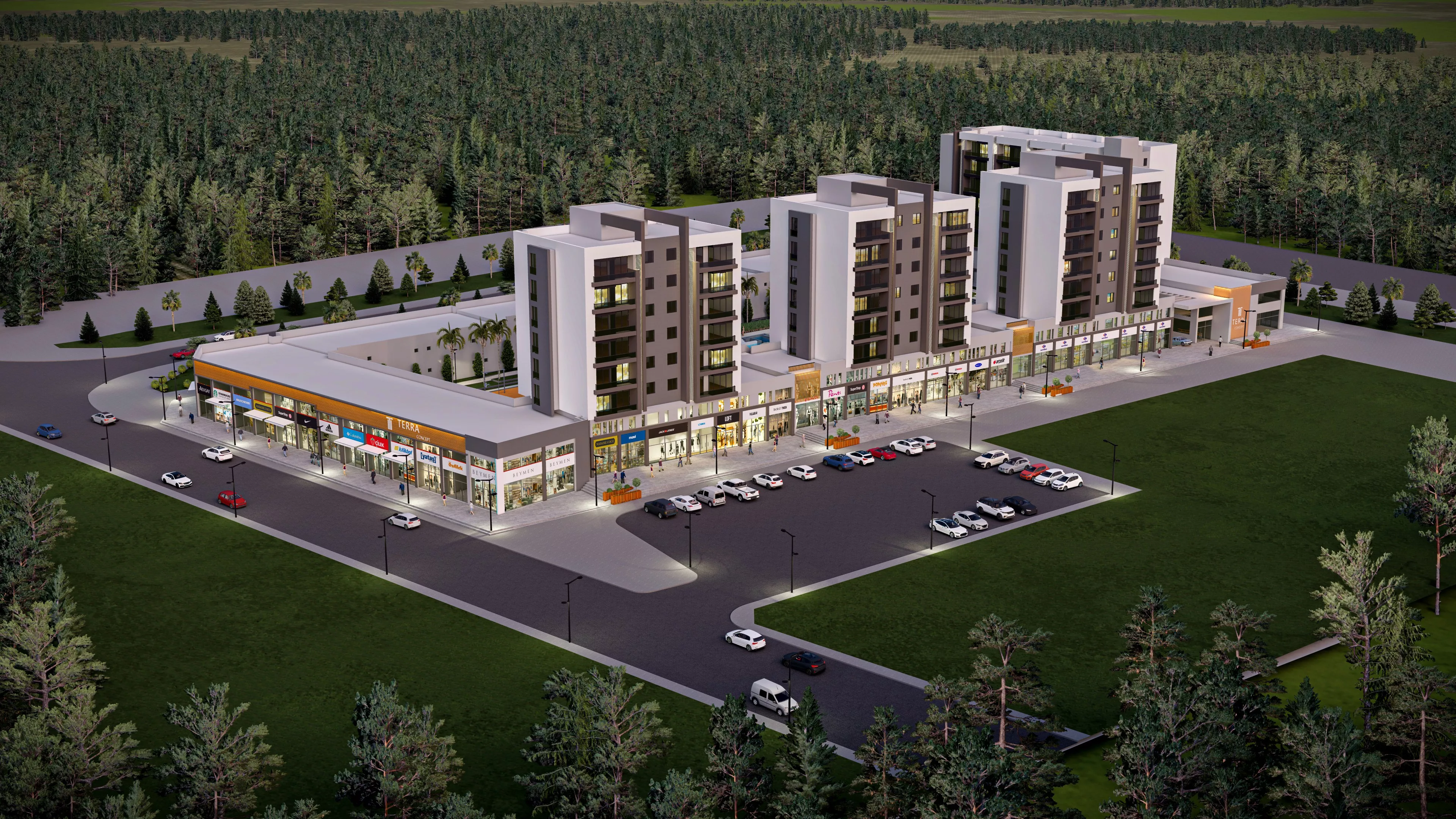 يعد مشروع Terra Concept مجمعًا متعدد الاستخدامات يجمع بين المساحات التجارية والسكنية في بيئة حديثة ومتكاملة. يتألف من 81 وحدة تجارية مصممة كمتاجر شارعية تلبي احتياجات الأنشطة التجارية، فيما تضم الأبنية السكنية 126 شقة متنوعة، بمزيج من التصاميم الحديثة التي تناسب الحياة الحضرية.