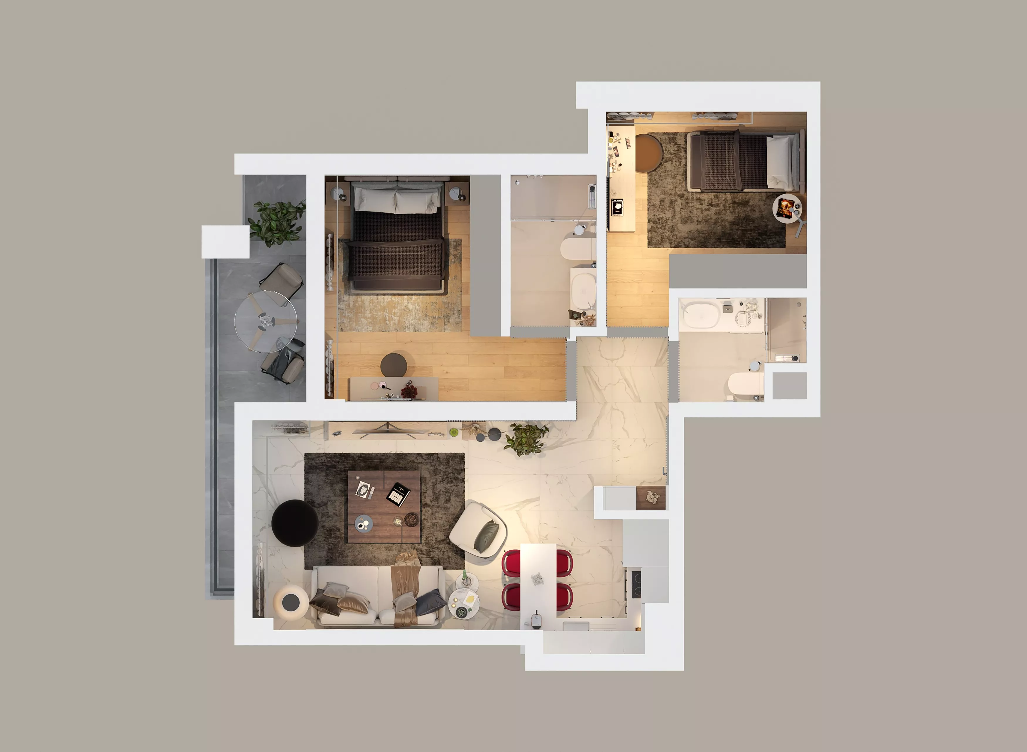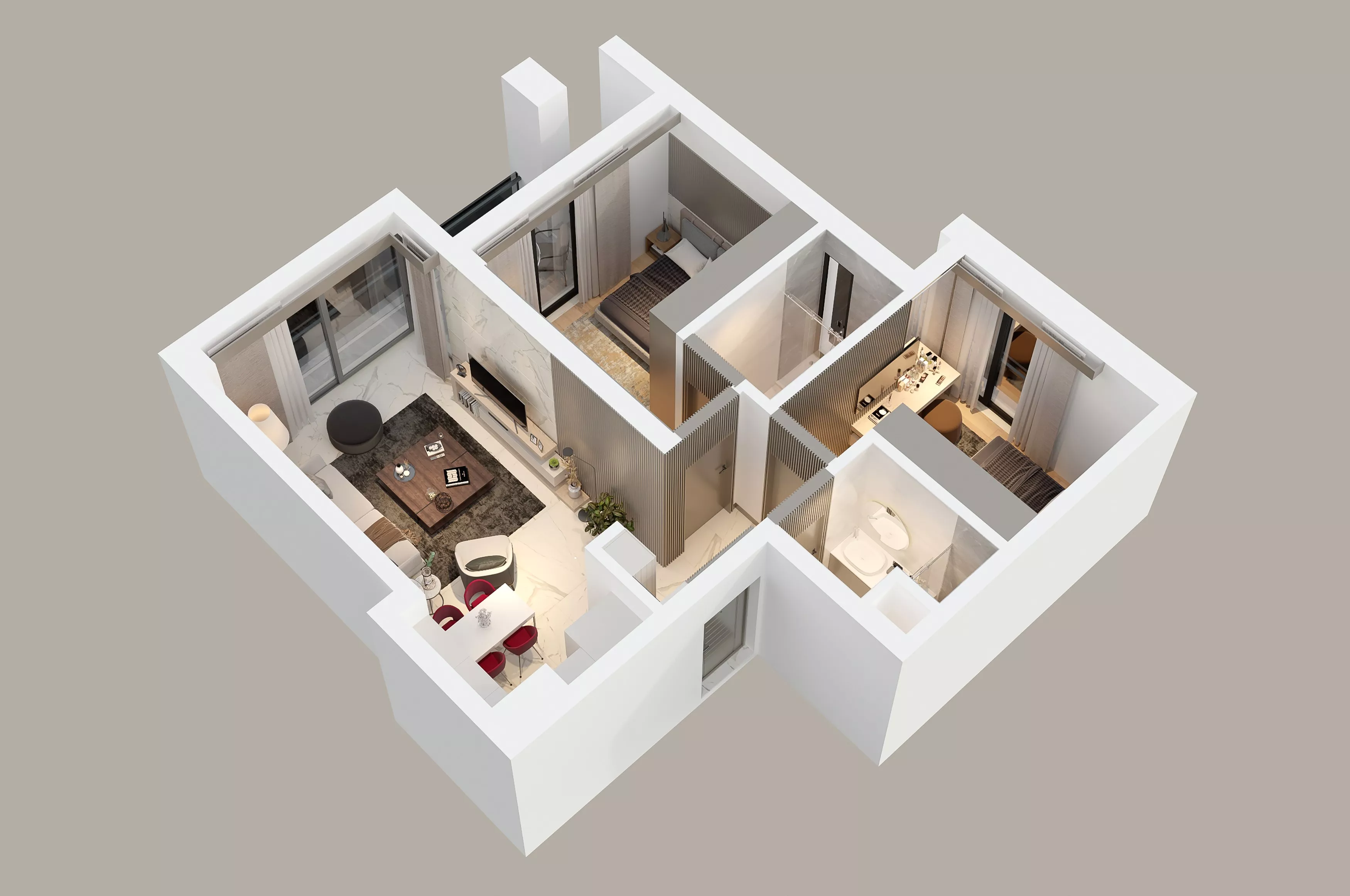 يضم مشروع Terra Concept شققًا سكنية بمواصفات عالية تشمل وحدات من نوع 1+1 و2+1، وتتوفر فيها تجهيزات مميزة:
