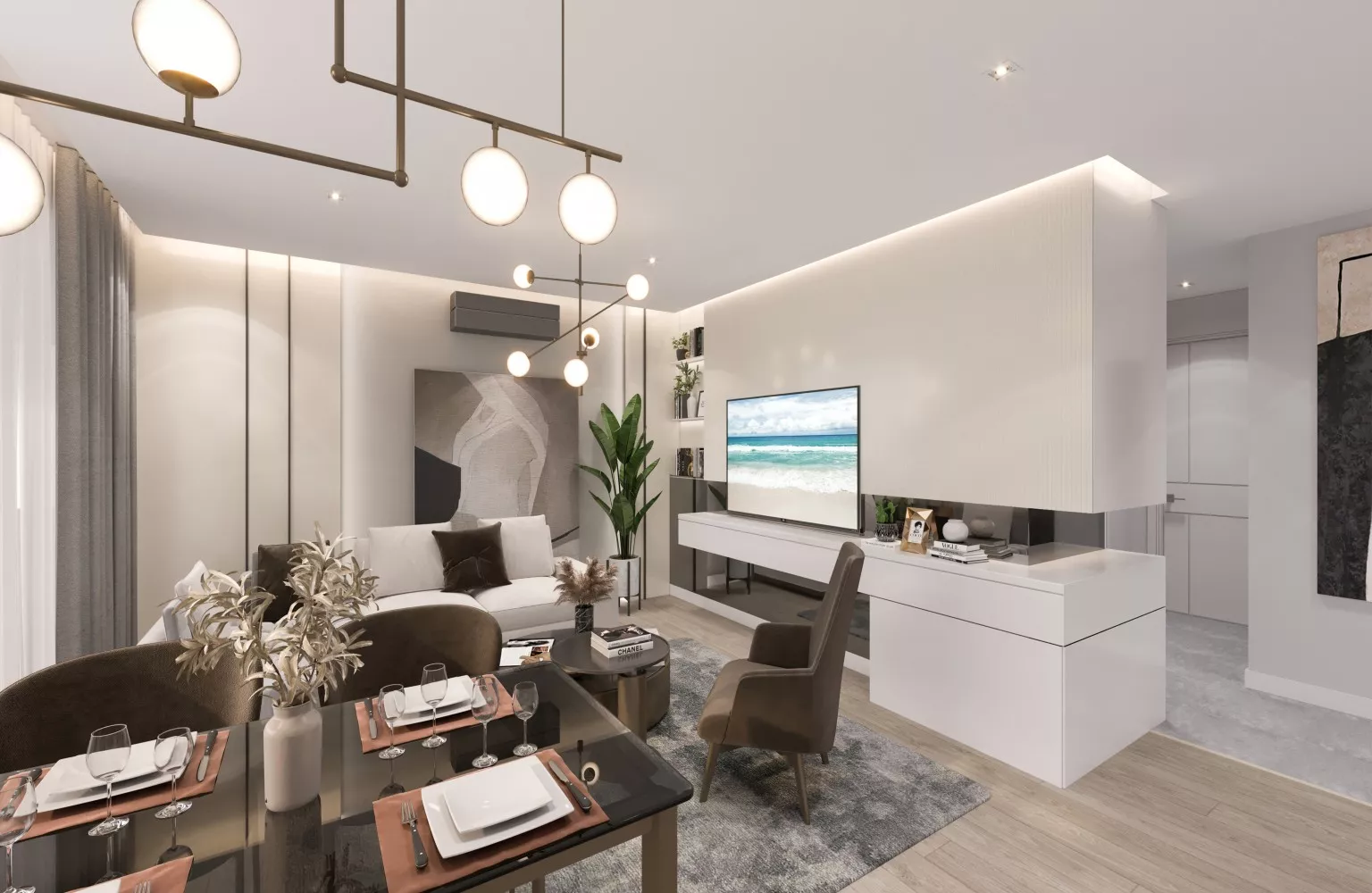 The interior design of each apartment has been carefully curated to meet high standards. The main entrance features a central locking system with a first-class steel door, providing both security and durability. Lacquered doors are used throughout the interior, creating a sleek and modern look.
