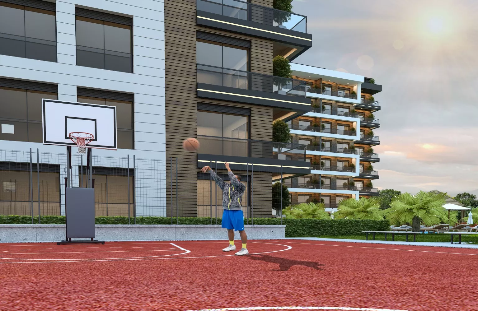 Beyoğlu Residence is packed with social amenities, perfect for both families and individuals. Enjoy the luxury of a 240 m² swimming pool, perfect for cooling off during Antalya's hot summer months, or stay active year-round in the indoor gym. For those who love outdoor sports, basketball and volleyball courts are available. The pergola areas are perfect for relaxing and socializing with friends or neighbors. All of these spaces are kept secure with 24/7 security and concierge services, providing peace of mind.