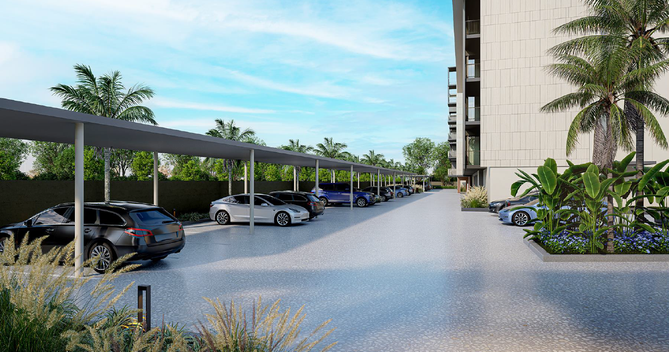 • Open and covered parking areas