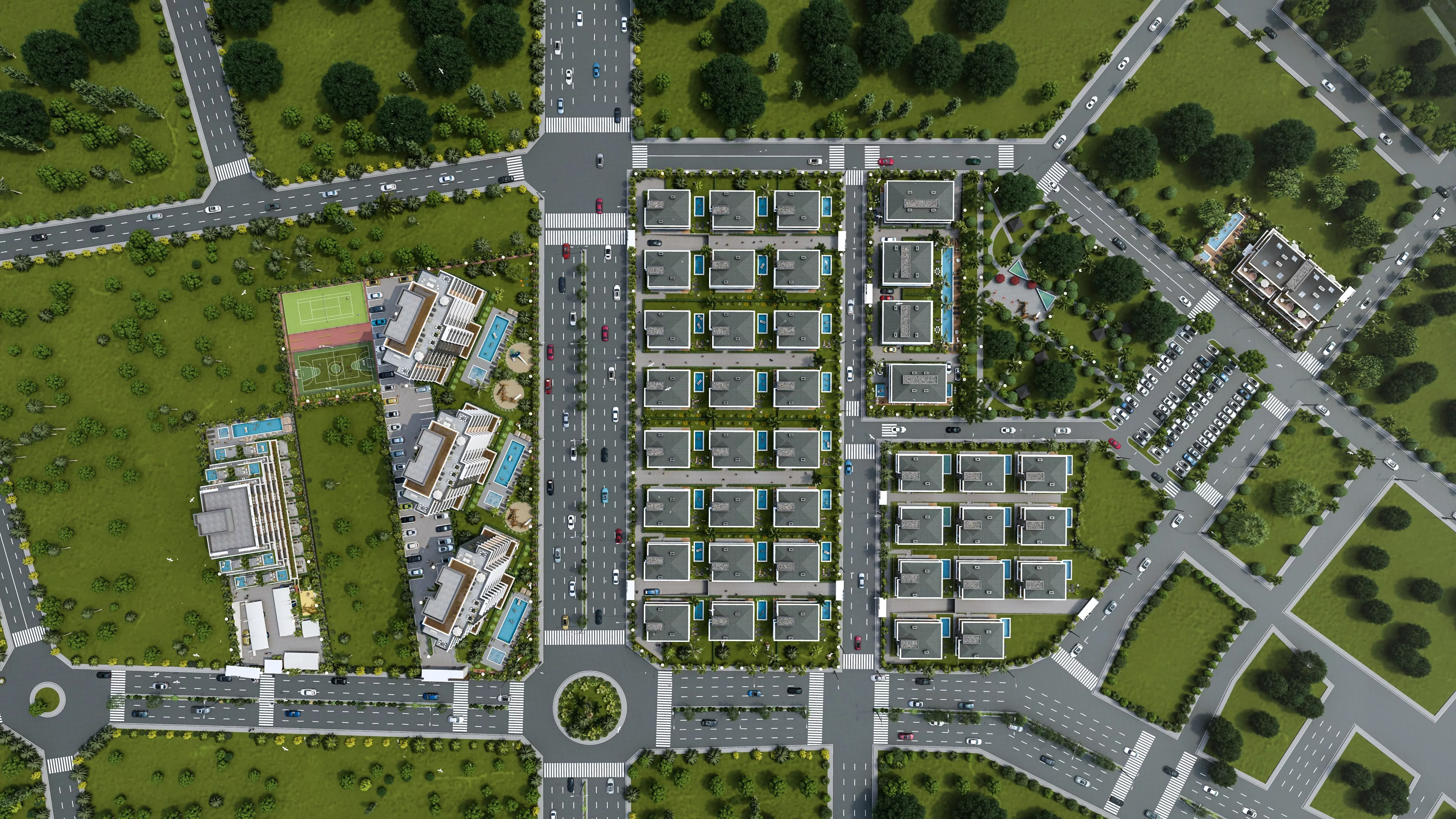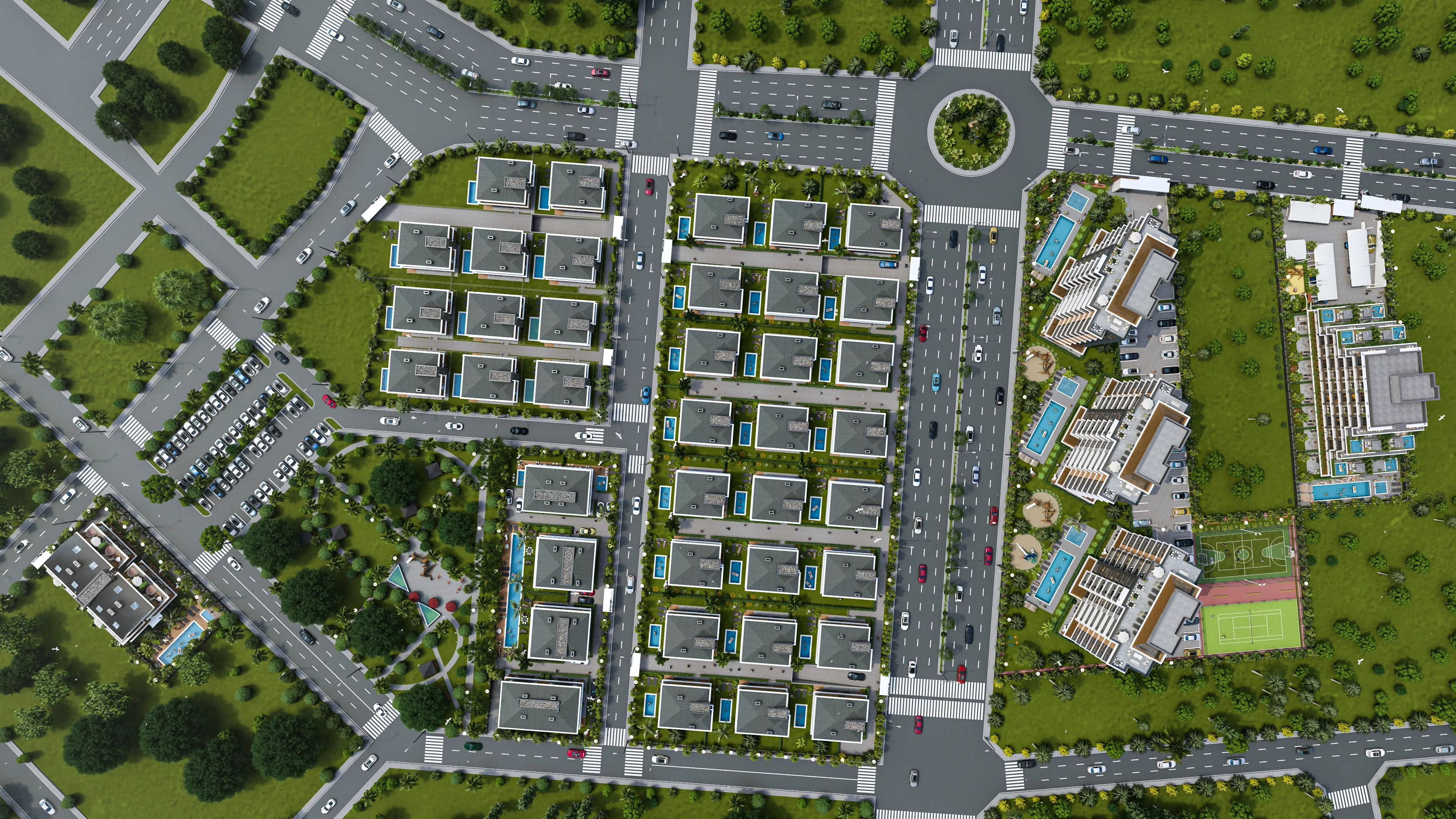 Apartments and villas under construction are built with modern architecture and high-quality materials. Designed for a comfortable life, they feature smart home systems, spacious balconies, modern kitchens, and airy living spaces. The villas are equipped with private pools, large gardens, and panoramic views. Additionally, on-site amenities include swimming pools, gyms, children's play areas, Turkish baths, saunas, and various social areas.