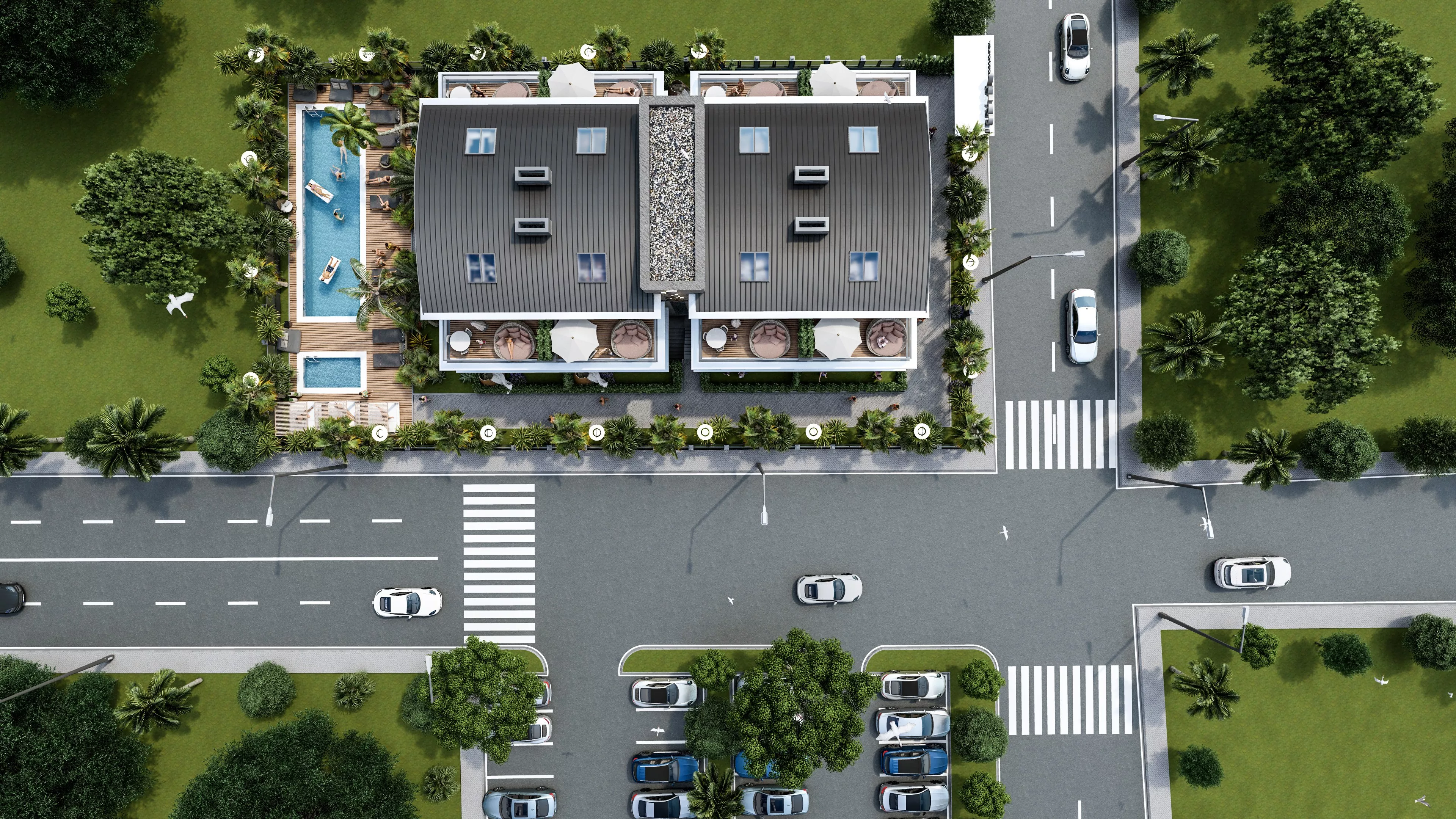 Green landscaped areas – Providing a peaceful and relaxing atmosphere.