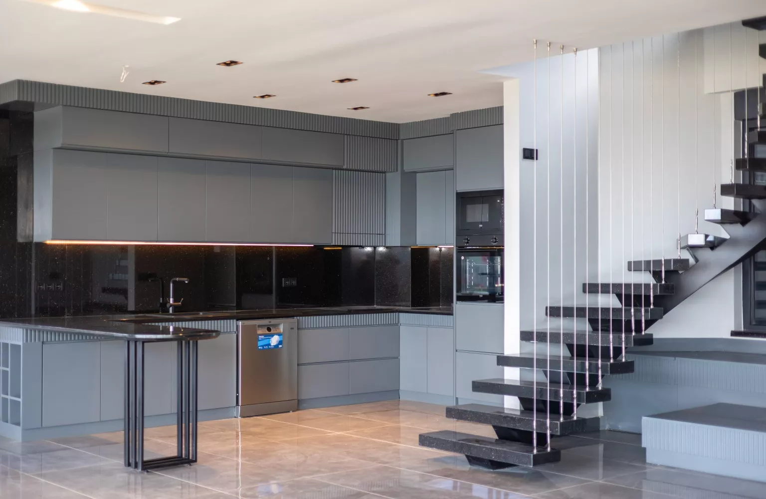 Living Room with Open Kitchen: The heart of the home is an open-plan living area that flows seamlessly into the kitchen. This layout promotes a bright and airy feel, perfect for family gatherings or entertaining guests.