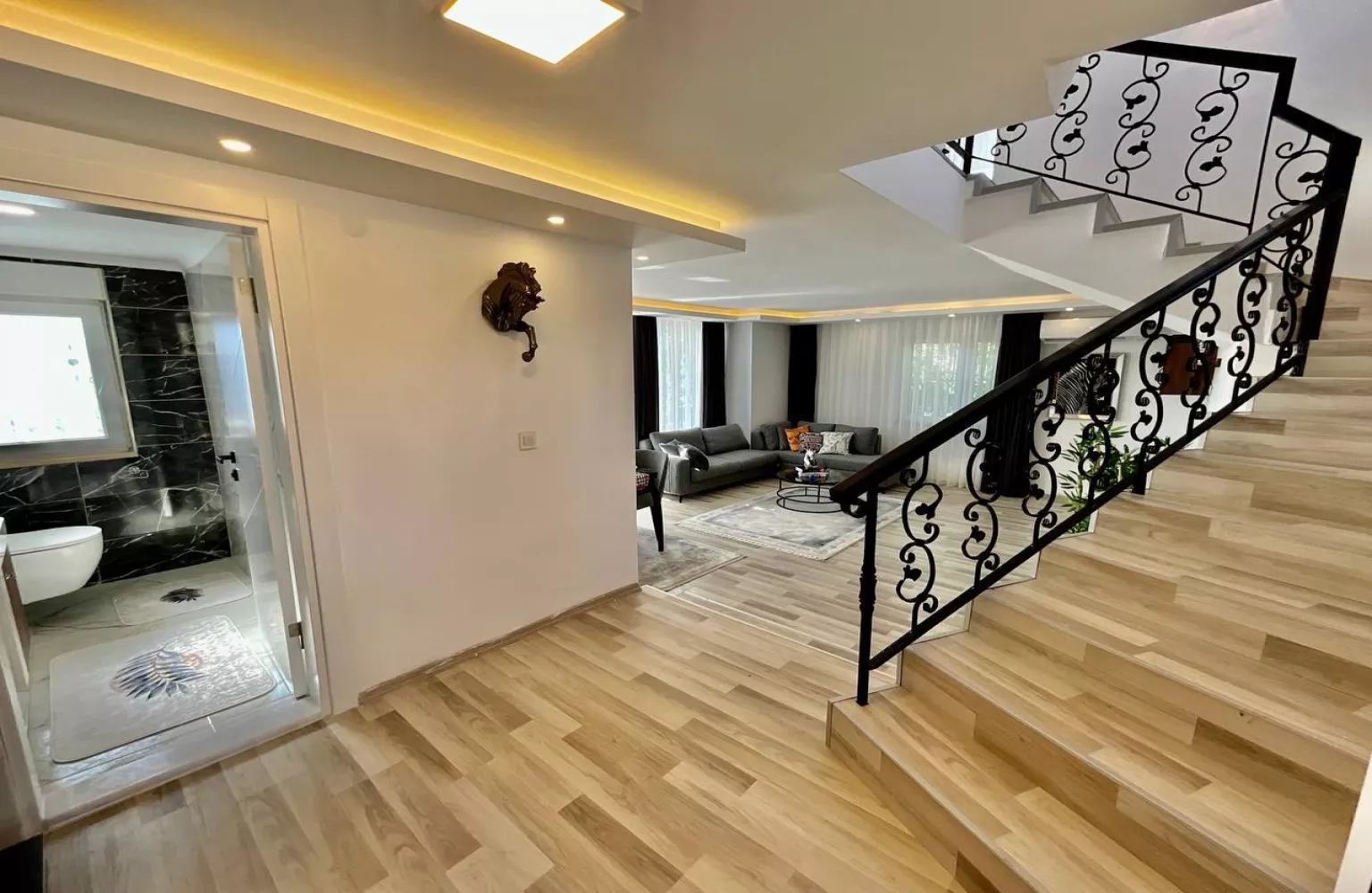 This spacious 3+1 semi-detached villa, located in the peaceful district of Türkler, Alanya, is perfect for those seeking a comfortable and serene lifestyle. With 120 m² of living space, this villa is fully furnished and offers everything you need for a cozy home or holiday retreat.