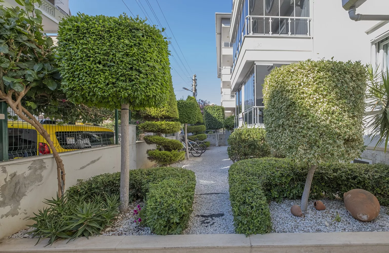 Bu eşsiz daire, geniş bir bahçe ve açık yüzme havuzu gibi sosyal olanaklara sahip bir binada yer almaktadır.
